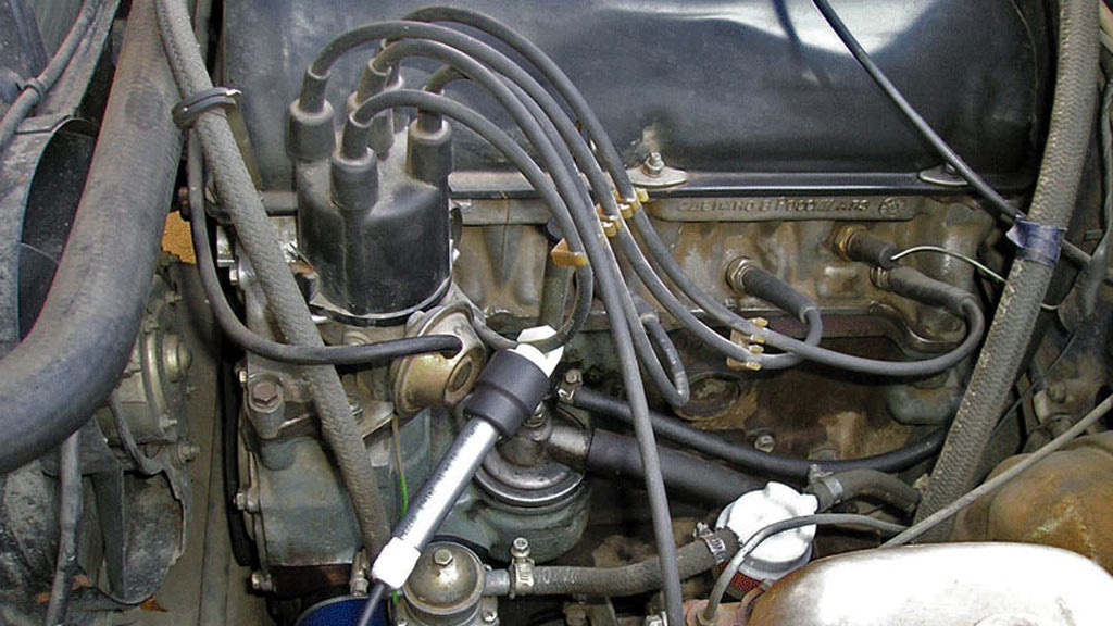Conexión de los sensores de alta tensión al sistema de encendido con la bobina ubicada dentro del distribuidor.