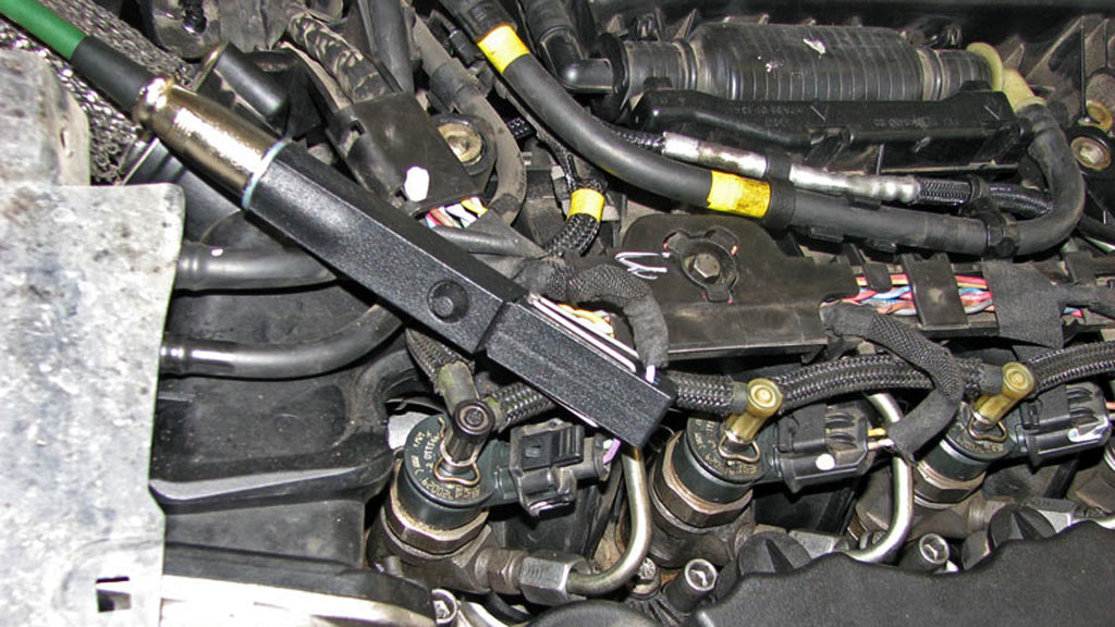 Conexión del USB Autoscope IV al cable de señal del sensor de cigüeñal.