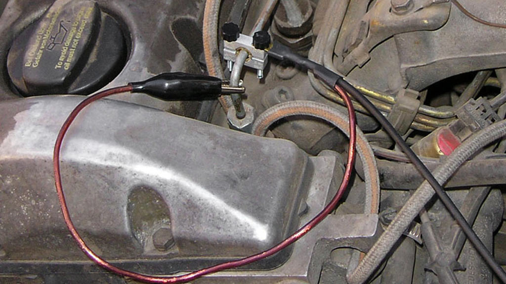 Conexión del sensor de pulsaciones de presión en tuberia de combustible en un motor diesel, para sincronizarse con el pulso de inyección en un inyector mecánico.