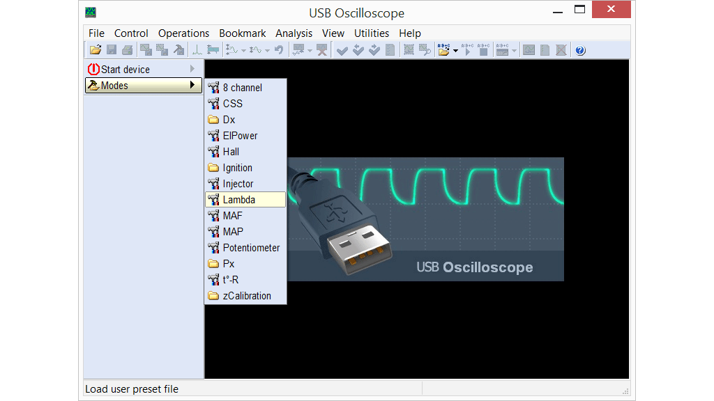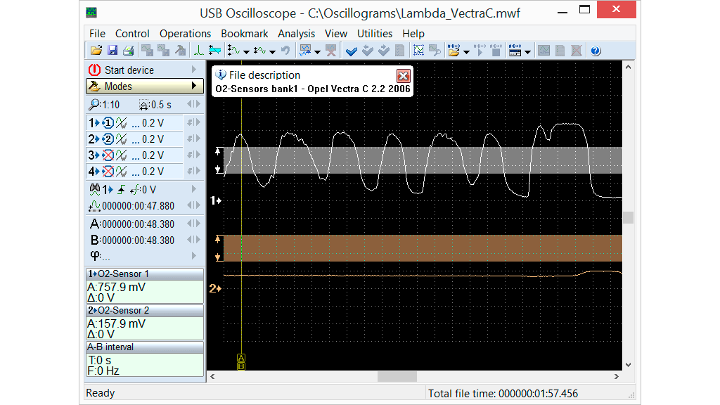 Inicio del USB Autoscope IV en modo de prueba del sensor de oxígeno.
