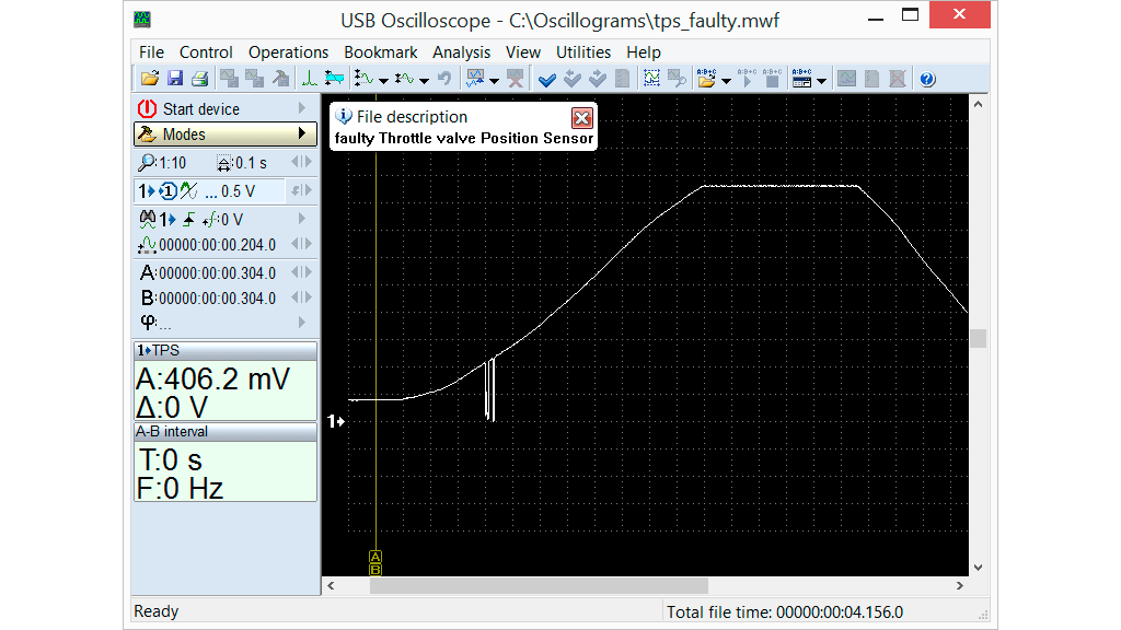 Inicio del USB Autoscope IV en modo de prueba del sensor de mariposa.